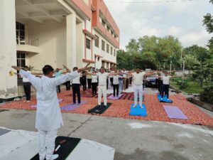इस अवसर पर सभी अधिकारियों एवं कर्मचारियों ने नियमित रूप से योग को अपने जीवन का अंग बनाकर शारीरिक, मानसिक एवं आत्मिक स्वास्थ्य को सुदृढ़ करने का संकल्प लिया।