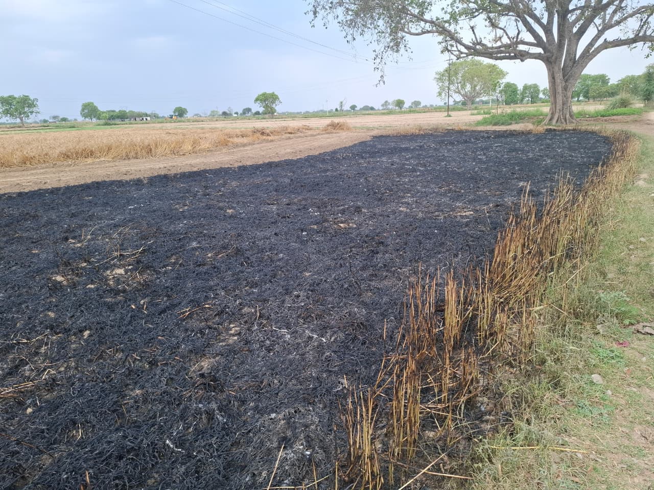 ट्यूबवेल के ट्रांसफार्मर से निकली चिंगारी से दो बीघा गेहूं की फसल जलकर स्वाहा