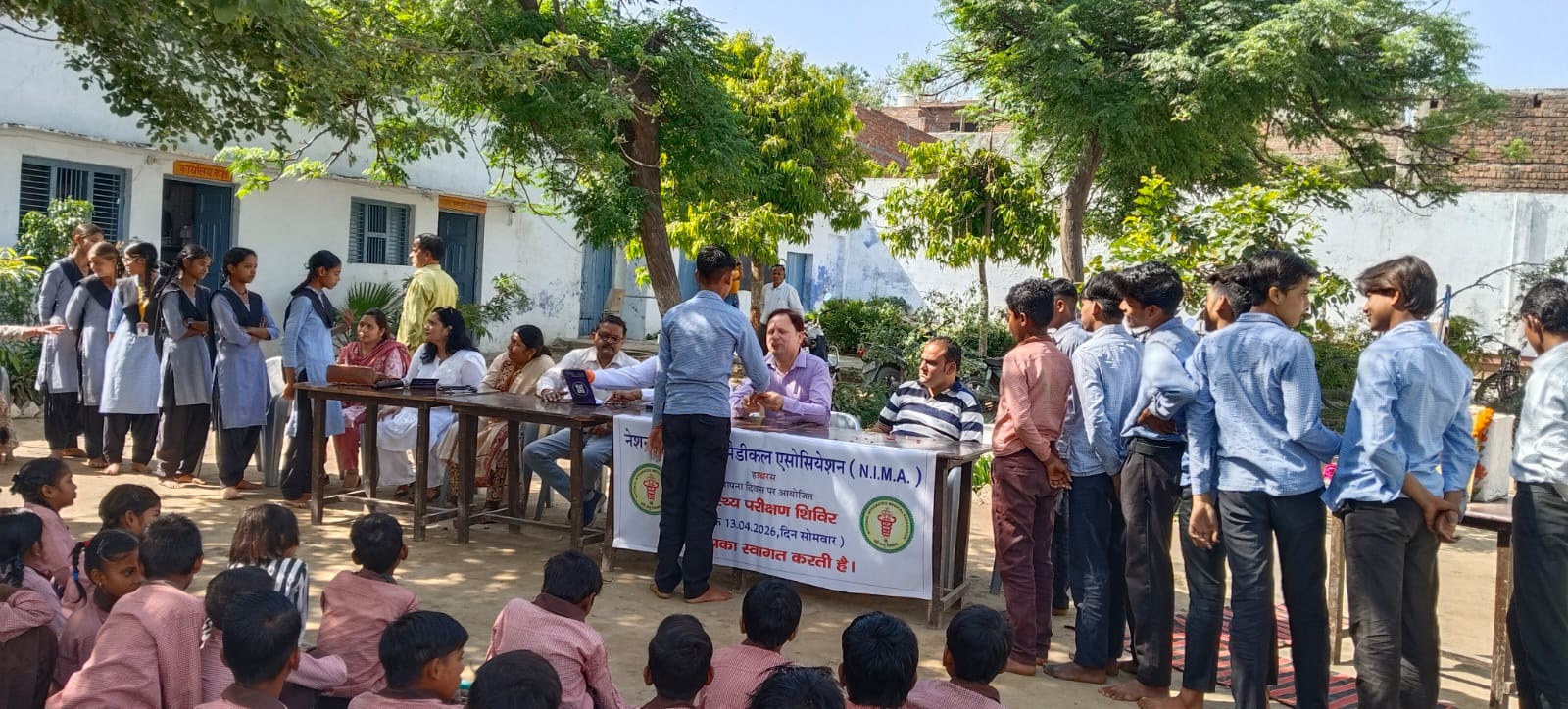 सोमवार को कार्यक्रम का शुभारंभ डॉ. ज्ञानमणी ने भगवान धन्वंतरि के चित्र पर माल्यार्पण एवं दीप प्रज्वलित कर किया। कॉलेज की छात्राओं ने तिलक लगाकर चिकित्सकों का स्वागत किया। इस दौरान नीमा के सचिव डॉ. लोकेश शर्मा ने बताया कि 13 अप्रैल 1948 को स्थापित इस संगठन की आज देशभर में लगभग 1300 शाखाएँ जनहित में कार्यरत हैं। उन्होंने कहा कि आयुर्वेदिक एवं यूनानी चिकित्सकों का यह संगठन जनसेवा के लिए सदैव कटिबद्ध है। जिलाध्यक्ष डॉ. वीरेंद्र कुमार ने चिकित्सकों की समस्याओं के समाधान हेतु संगठन की एकजुटता पर जोर दिया। वहीं, उपाध्यक्ष डॉ. धर्मेंद्र उपाध्याय ने उपस्थित जनसमूह को मोटा अनाज (मिलेट्स) खाने के फायदे गिनाते हुए स्वस्थ जीवनशैली अपनाने के लिए प्रेरित किया। डॉ. अखिलेश कुमार एवं डॉ. मनेंद्र त्रिगुनायत ने बच्चों को स्वच्छता के प्रति जागरूक किया। शिविर में डॉ. नीतू सिंह और डॉ. अलका सेंगर ने महिला अध्यापकों एवं छात्राओं का स्वास्थ्य परीक्षण कर उचित परामर्श दिया। कार्यक्रम के अंत में नीमा की ओर से विद्यार्थियों को फल, बिस्कुट और चिप्स वितरित किए गए। कॉलेज के प्रधानाचार्य डॉ. राजीव अग्रवाल ने सभी चिकित्सकों का आभार व्यक्त किया। कार्यक्रम का सफल संचालन अशोक कुमार ने किया और समापन श्भारत माता की जयश् के उद्घोष के साथ हुआ।।इस अवसर पर मुख्य रूप से डॉ. वीरेंद्र कुमार, डॉ. लोकेश शर्मा, डॉ. धर्मेंद्र उपाध्याय, डॉ. अखिलेश कुमार, डॉ. मनेंद्र त्रिगुनायत, डॉ. ज्ञानमणि, डॉ. नीतू सिंह, डॉ. अलका सेंगर, वैद्य पुनीत अग्निहोत्री, डॉ. अंशुल उपाध्याय, पुनीत त्रिवेदी, अरुण कौशिक, मुकेश दिवाकर, संजय यादव, राजीव कुमार, भारत सिंह, प्रियंका यादव, विनय कुमार, नीरज गुप्ता, महेंद्र सैनी, हनी वशिष्ठ, सतीश अग्निहोत्री, जीतेन्द्र, यश और राकेश कुमार आदि उपस्थित रहे।