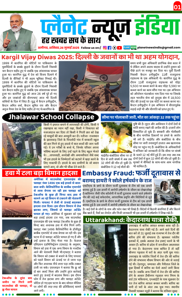 कारगिल विजय दिवस : सीएम योगी ने शहीदों को अर्पित की पुष्पांजलि, बोले- ये दिन हमारी सेना के शौर्य का प्रतीक July 26, 2025 No Comments